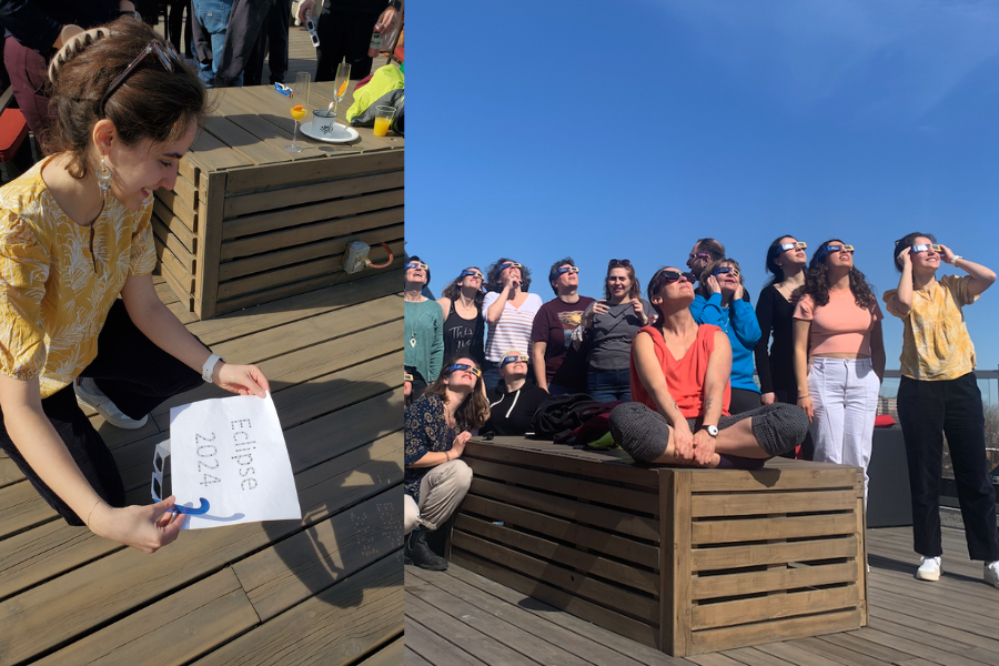 On the day of the eclipse, the ambassadors’ unwavering dedication shone brilliantly. Many guided the tens of thousands of people who gathered at the many events across the province, including those held on UdeM campuses: at the CEPSUM, the MIL campus, the Institut de recherche en biologie végétale at the Biodôme, the main campus and the Ste-Hyacinthe campus. Others organised their own events, transforming the roof of their building, a park near their home or a carefully identified plot of land in the path of totality into improvised observation sites.
